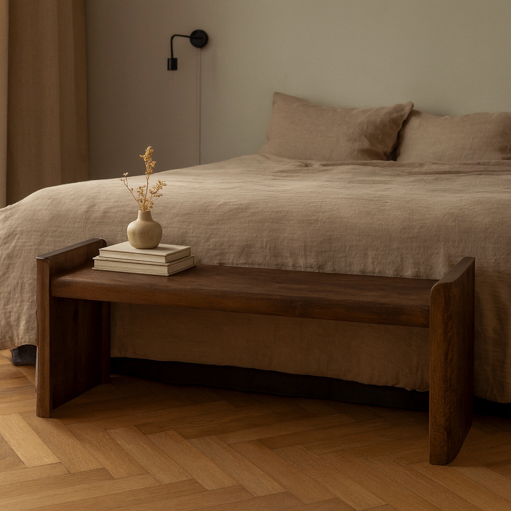 Banca Leah aduce în locuință un amestec armonios de simplitate și detalii lucrate manual, fiind realizată din lemn masiv de mango, recunoscut pentru rezistența și frumusețea sa naturală. Designul său liniar este accentuat de picioarele cu textură sculptată, care dau un aer jucăuș și original. Suprafața netedă, finisată într-o nuanță caldă de maro, o face ușor de asociat cu alte piese din lemn sau mobilier tapițat. Datorită proporțiilor sale echilibrate, poate fi folosită ca bancă în sala de mese, pe hol, la intrare sau chiar ca piesă de accent într-un dormitor. Stilul său versatil se potrivește în amenajări moderne, nordice, rustice sau minimaliste. Este o piesă practică și decorativă deopotrivă, ideală pentru cei care caută un mobilier autentic și durabil.