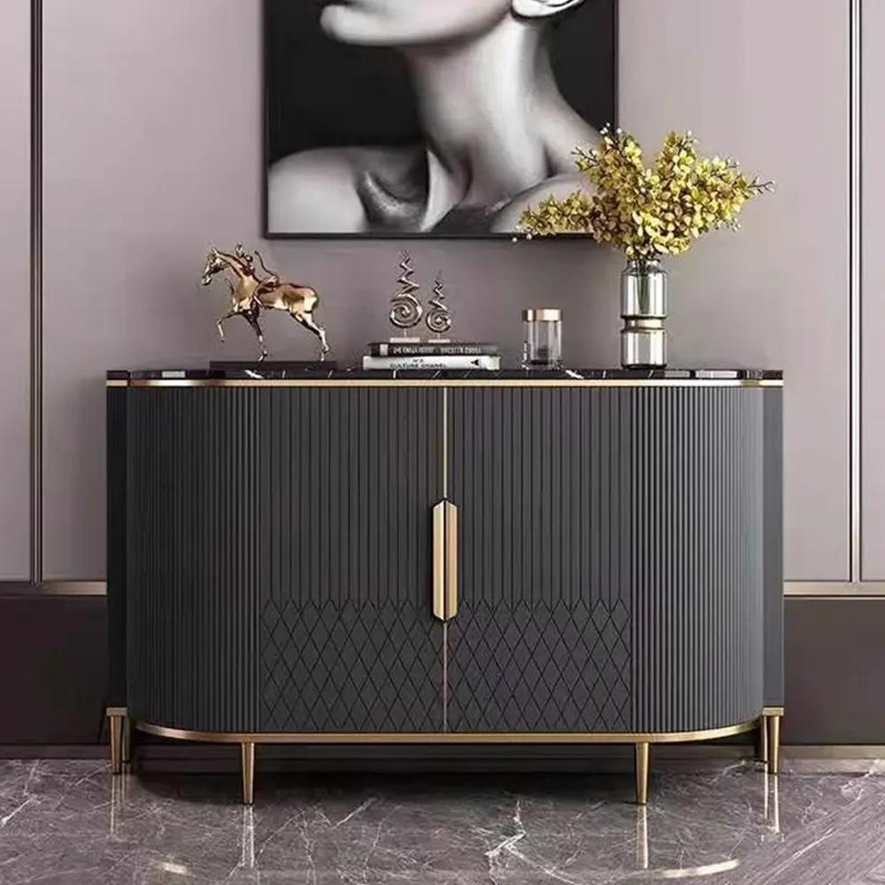 Consola premium Avalon cu margini rotunjite și detalii aurii. Eleganță discretă și design fluid pentru interioare moderne.