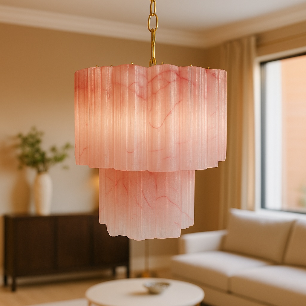 Candelabrul Merisi combină sticla texturată cu o siluetă sculpturală în trepte, creând un efect luminos profund și elegant. O piesă statement, ideală pentru interioare moderne și spații care cer o prezență artistică.