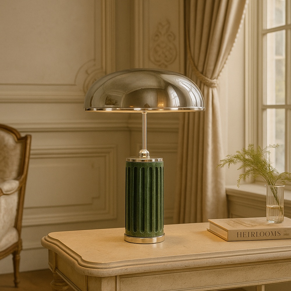 Abajurul său metalic cu formă rotunjită reflectă lumina într-un mod cald și armonios, creând o atmosferă intimă și plăcută. Designul versatil permite integrarea perfectă în interioare de inspirație clasică, modernă sau chiar în spații cu influențe art deco. Fie că este plasată pe o noptieră, o consolă sau un birou elegant, lampa Sage aduce un plus de stil și personalitate fiecărui decor.