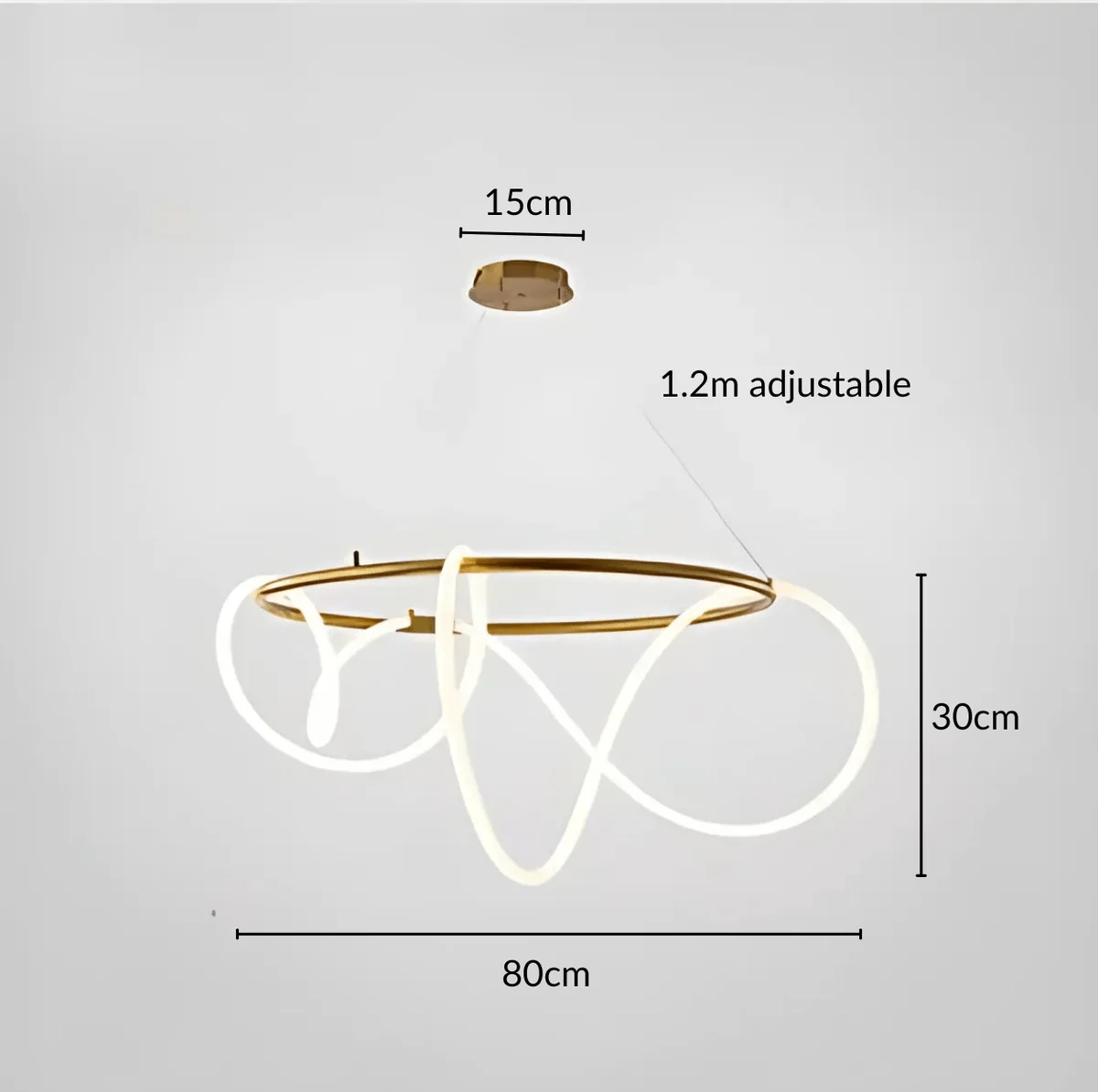 Lustra Rondy este un exemplu de design contemporan unde formele circulare se împletesc cu tehnologia modernă. Structura sa rotundă, pusă în valoare de cablul LED flexibil, creează o lumină fluidă și echilibrată, ce devine imediat punctul central al încăperii. Aspectul său elegant și armonios se integrează perfect atât în dininguri sofisticate, cât și în livinguri minimaliste sau spații creative. Finisajele disponibile – negru satinat sau alamă – adaugă versatilitate, iar jocul de lumini difuze creează o atmosferă relaxantă și primitoare. Cu o durată de viață de până la 150.000 de ore și opțiunea de reglare a intensității, Rondy este o alegere practică și estetică pentru orice tip de interior.