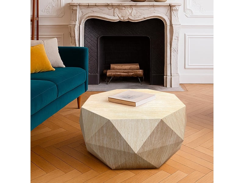 Măsuță living premium Jins din lemn masiv, cu formă geometrică și design sculptural – Homedit.ro.