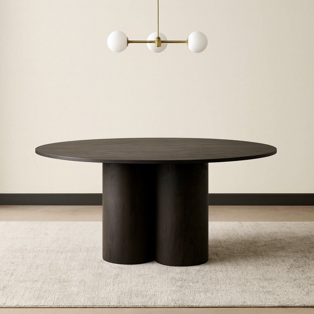 Masă de dining Amira, diametru140 cm, finisaj brun-închis, design rotund, elegant și minimalist. Ideală pentru living, bucătărie sau sala de mese.