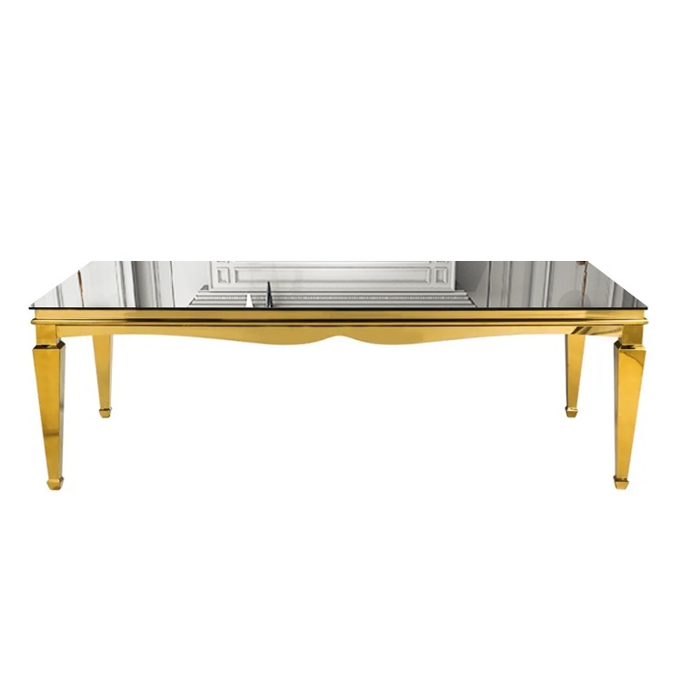 Masă de eveniment Luxa – o piesă impunătoare cu blat din sticlă neagră și structură aurie titan, creată pentru nunți, banchete și seri cu adevărat memorabile. doar pe Homedit.