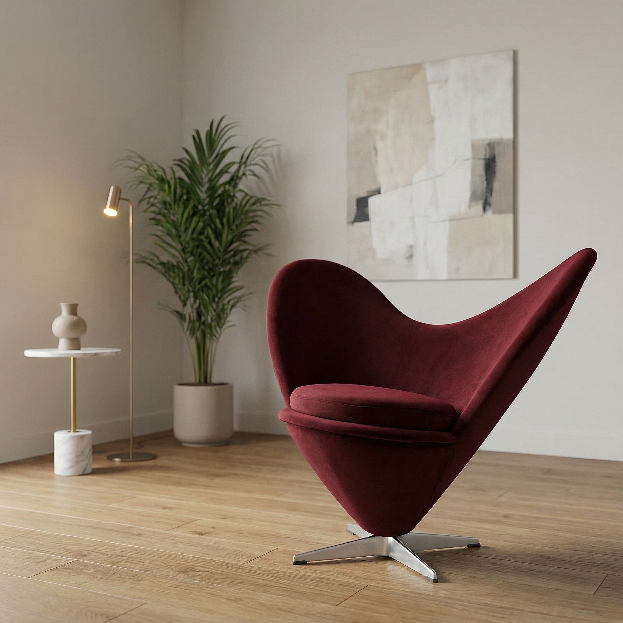 Fotoliul/ scaunul Velaria este conceput pentru cei care tratează mobilierul ca pe un element de arhitectură interioară. Silueta sa sculpturală, cu spătarul înalt și asimetric, creează o formă fluidă care devine imediat centrul vizual al încăperii. Liniile curbe, ample, sunt echilibrate de baza metalică pivotantă, ceea ce îi oferă fotoliului atât stabilitate, cât și flexibilitate în utilizare.