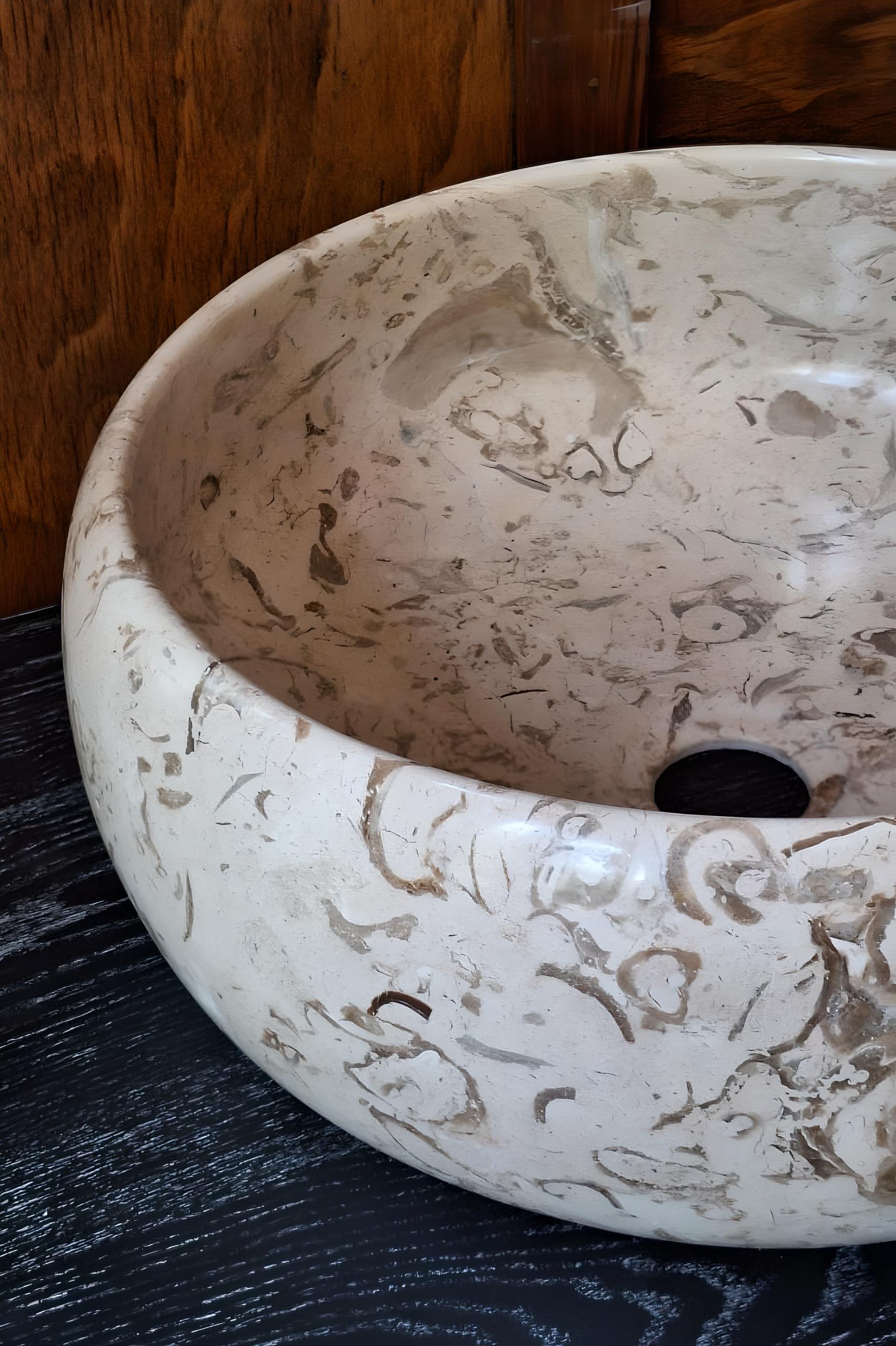 Lavoarul rotund Opalis din onix aduce un aer sofisticat și natural în orice baie. Realizat manual din piatră naturală, fiecare piesă are variații unice de textură și culoare, care îi conferă un caracter autentic și elegant. Forma rotundă și finisajul mat se integrează perfect în băile moderne sau în cele cu accente naturale, fiind ușor de asortat cu blaturi din lemn, piatră sau compozit. Montajul pe blat îl transformă într-o piesă statement, ideală pentru cei care caută echilibru între funcționalitate și design premium.
